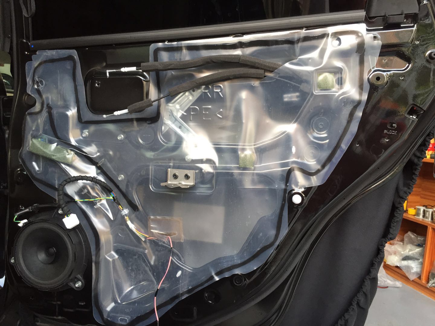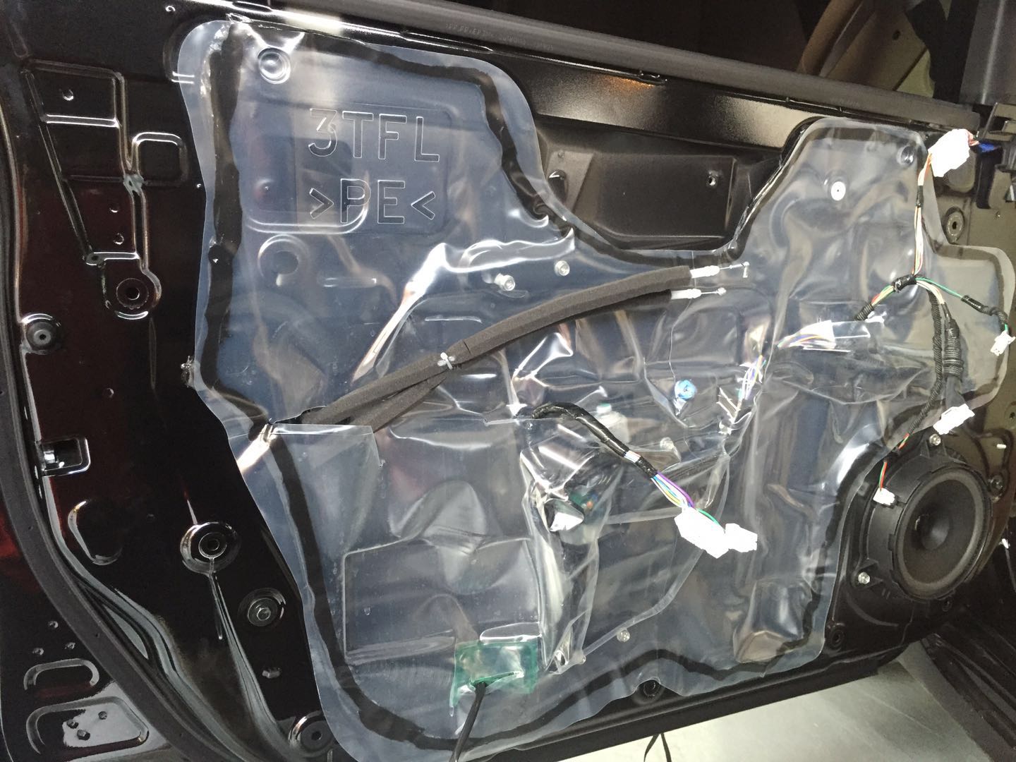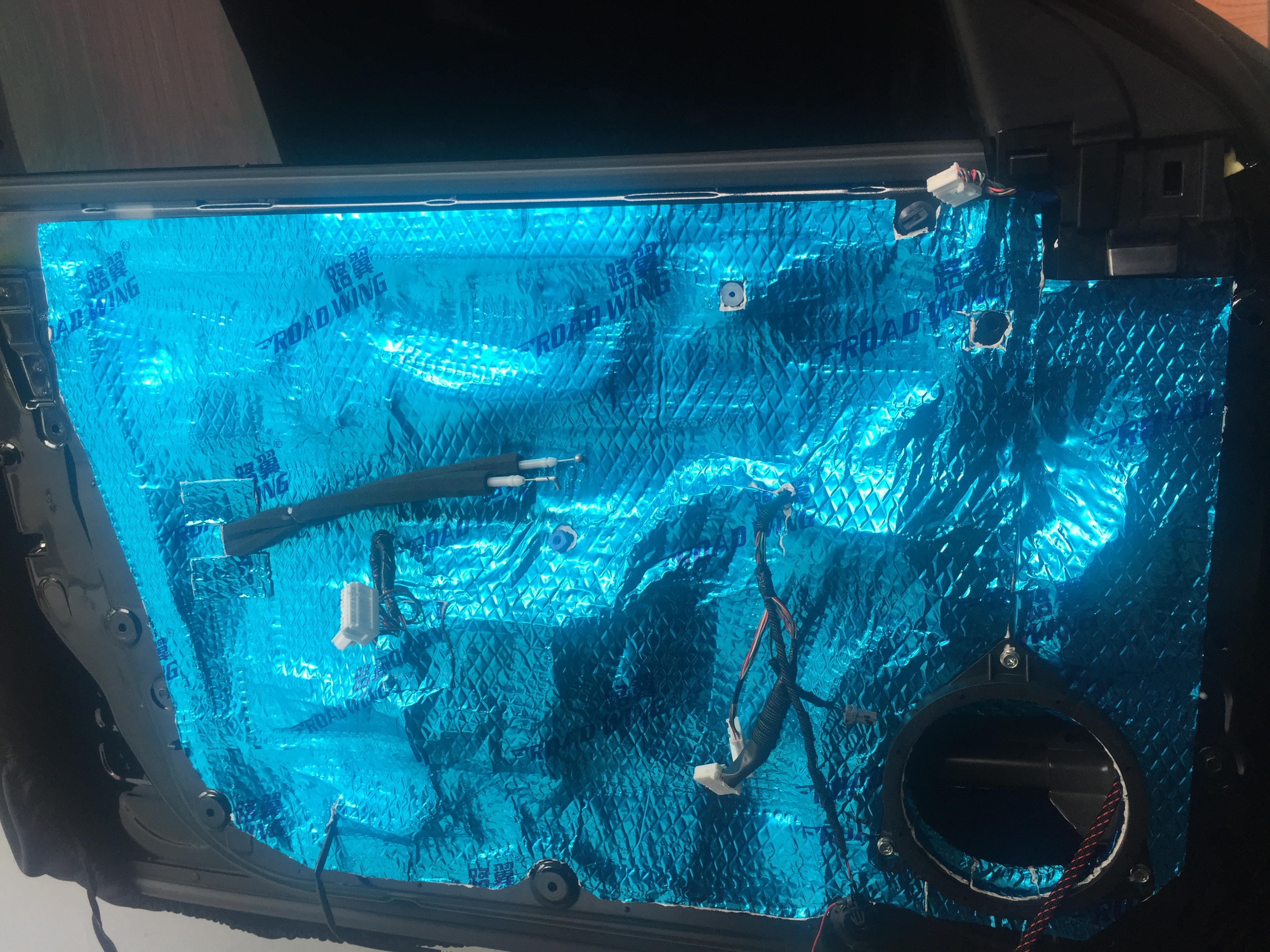 原車車門喇叭展示,薄薄一層,沒有做任何隔音處理。聽音環(huán)境不能保證,喇叭效果再好也不能充分發(fā)揮出來,所以在車主改裝之前,我們一般都會(huì)看車子是否有良好的聽音環(huán)境(也就是是否做過隔音處理),所以本次改裝,使用了三層路翼隔音,確保提供優(yōu)質(zhì)的聽音環(huán)境!